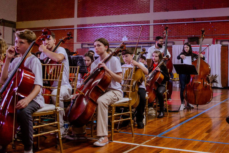 Sob a regência de Letícia Arnold e Emanuel Müller, os jovens musicistas da Orquestra apresentaram parte de seu repertório, vivenciando também momentos de integração, aprendizado e troca de experiências com colegas de diferentes localidades. Um dos pontos altos foi a formação da tradicional Grande Orquestra do ENCORE, que reuniu mais de 400 instrumentistas em uma apresentação coletiva emocionante.