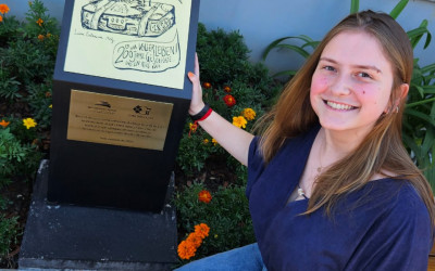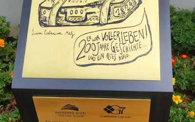 Placa comemorativa aos 200 anos da Imigração Alemã eterniza desenho feito por acadêmica da Faculdade Instituto Ivoti