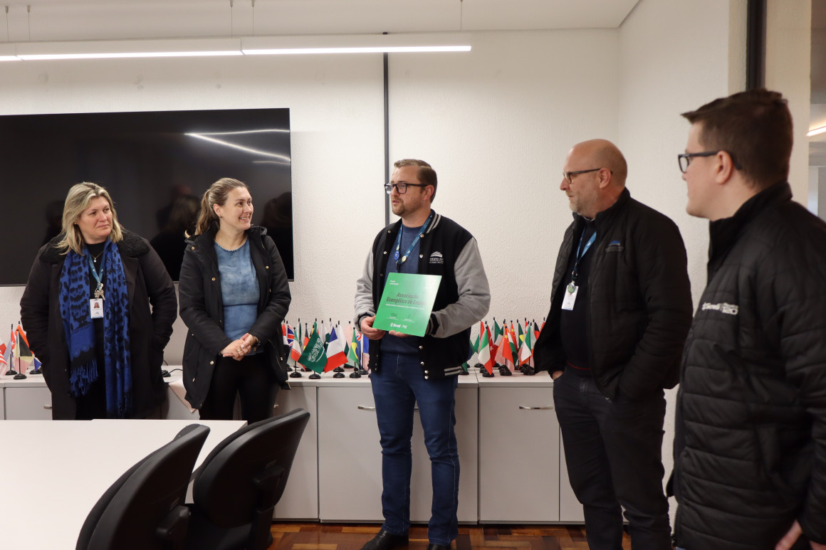 Participaram da reunião o diretor Júnior, o diretor administrativo Cristiano e a professora Patrícia, coordenadora do Projeto Herbário Vivo e do Curso Técnico em Agropecuária, além de representantes do Sicredi.