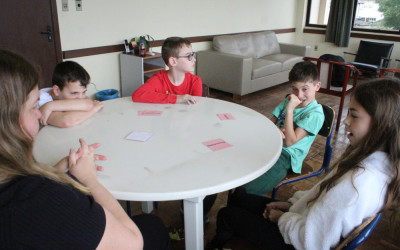 Na parte da tarde, a turma de 5º ano B também realizou a prova. Os estudantes têm aulas de alemão no currículo regular, por este motivo, fazem a prova um ano mais tarde que os estudantes do Currículo Bilíngue.