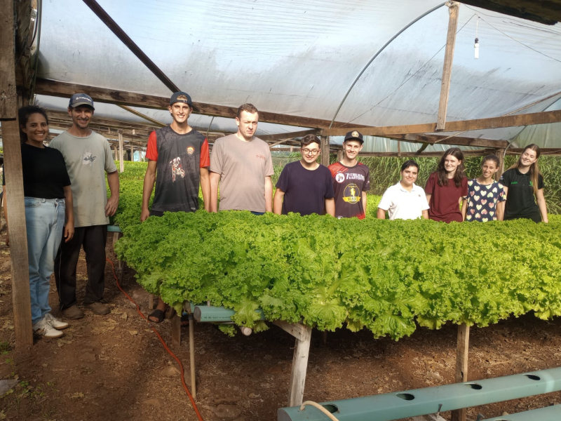Na última semana, os estudantes do 2º ano do curso técnico em Agropecuária do Instituto Ivoti participaram de uma saída de estudos para conhecer, na prática, um sistema de produção hidropônica. A visita foi realizada na propriedade do produtor, Sr. Elemar Backes, localizada em Nova Vila, no município de Presidente Lucena.