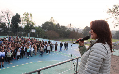 Estudantes do Ensino Médio e Anos Finais do Ensino Fundamental do Instituto Ivoti participam da abertura da Semana da Pátria em um momento de Hora Cívica, ao longo dos próximos dias. O diretor Júnior Tiago Ben refletiu com os estudantes sobre o sentido da Semana Pátria e a nossa posição enquanto cidadãos, reforçando o respeito e orgulho pela nossa bandeira, e como podemos fazer diferença na sociedade.