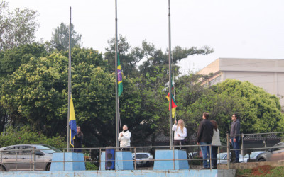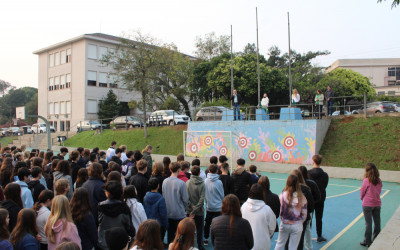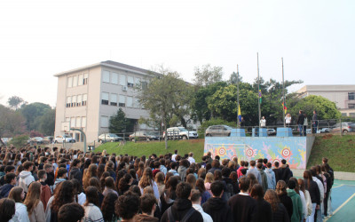 Após esse momento de reflexão sobre a data, os estudantes cantaram o Hino Nacional durante o hasteamento da bandeira.