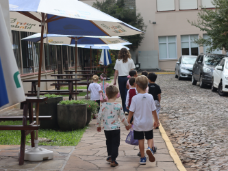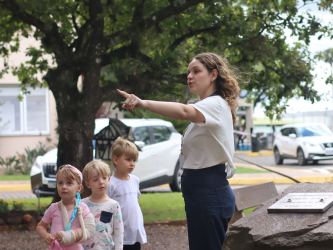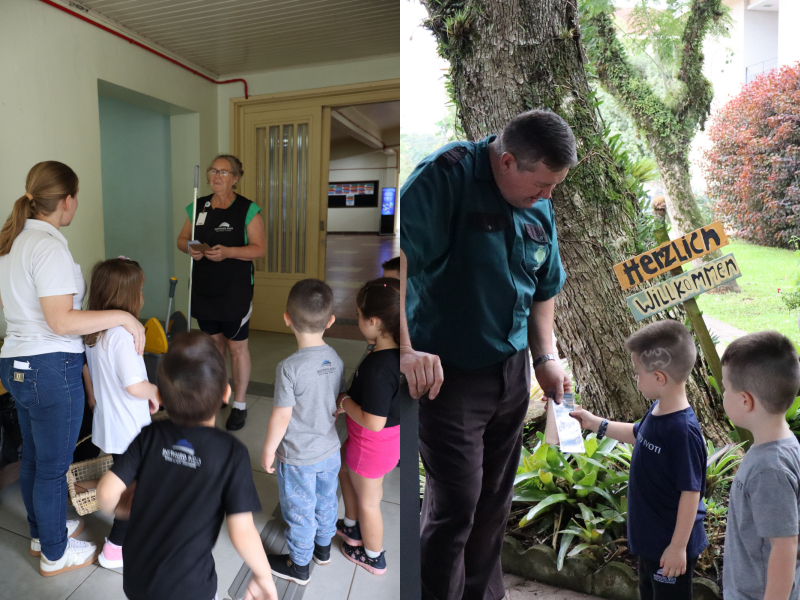 Já no dia 8 de abril, as turmas do Gruppe 3 e 4 participaram de uma proposta voltada à exploração de espaços significativos do Instituto. Durante o percurso, visitaram o internato (Turno Integral), a pedra fundamental da escola e também observaram fotos antigas expostas na secretaria. Curiosas e atentas, as crianças demonstraram grande interesse pelos detalhes e pelas histórias presentes em cada ambiente, com o apoio das professoras monitoras que conduziram a atividade.