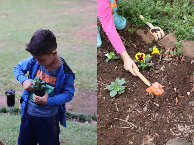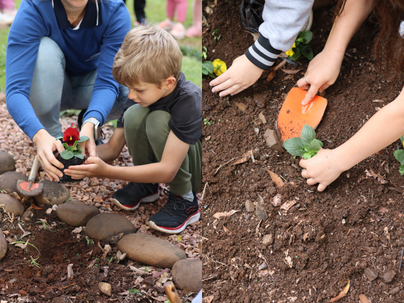 No dia 9 de abril, todas as crianças da Educação Infantil participaram de mais um momento especial: o plantio de flores no canteiro da pracinha. A atividade incentivou o cuidado com o ambiente, a responsabilidade e o trabalho em grupo, além de permitir que os pequenos contribuíssem de forma concreta para deixar o espaço ainda mais bonito e acolhedor para receber as famílias no dia do Aniversário.
