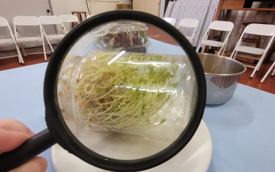 As crianças que participam das aulas do Programa Herbário Vivo estão estudando sementes. Nas aulas das últimas semanas as turmas puderam provar brotos de lentilha e alfafa, produzidos por eles. A ideia é que, por meio da proposta, as crianças possam produzir seus próprios brotos, diversificando seus itens alimentares.