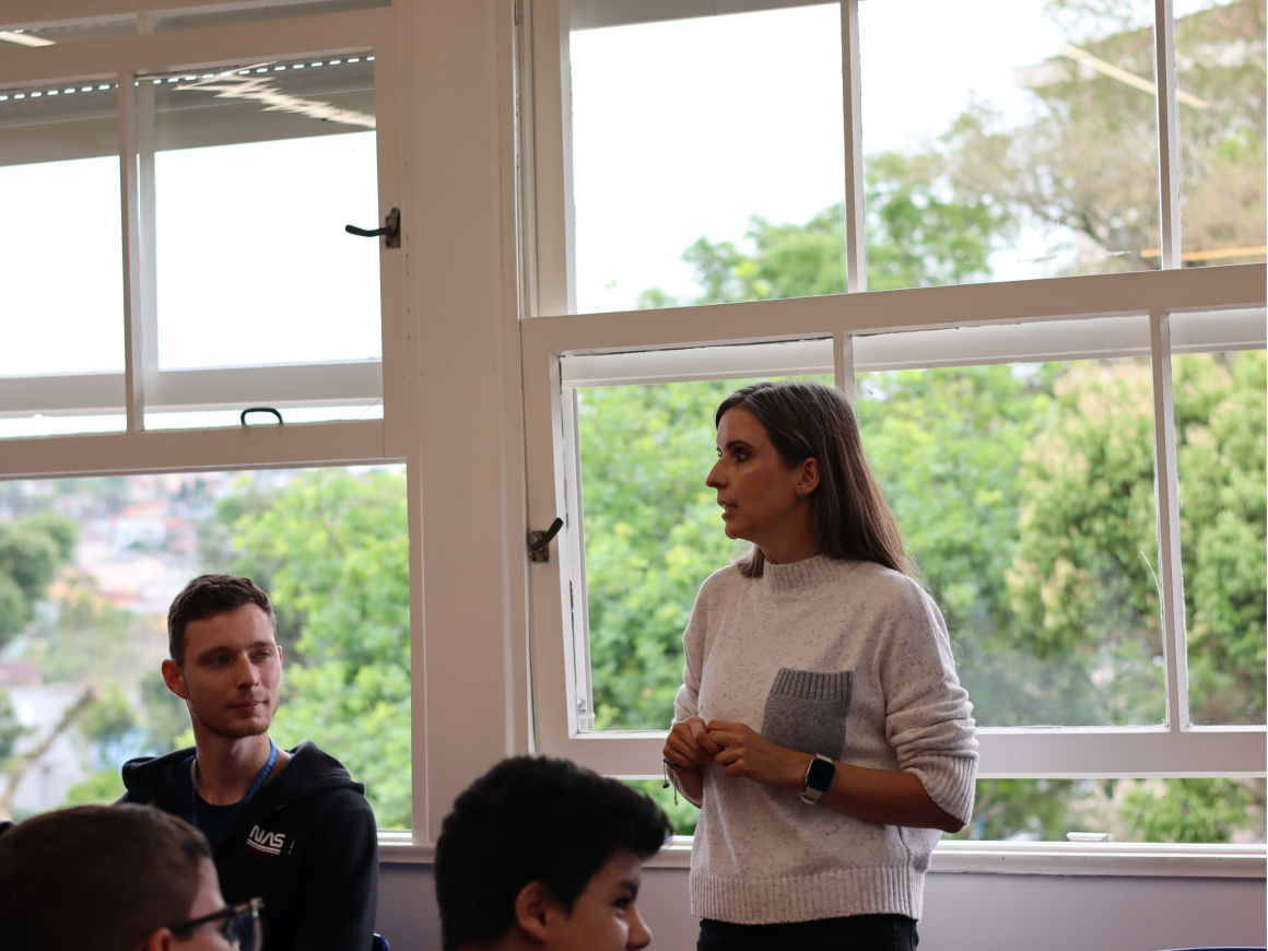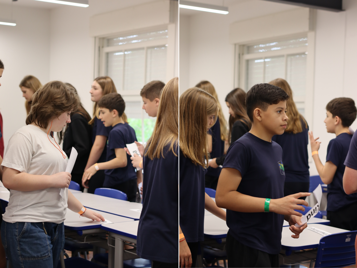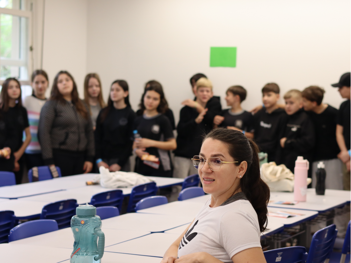 Durante o encontro, a coordenadora de Língua Alemã explicou as diferentes possibilidades de aprendizado oferecidas pelo NAI e destacou a importância de conhecer o idioma para o futuro dos estudantes. Em seguida, os alunos participaram de oficinas práticas, nas quais puderam vivenciar a língua de maneira dinâmica e divertida, explorando vocabulário, expressões e situações do cotidiano em alemão.