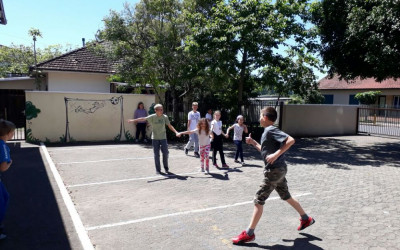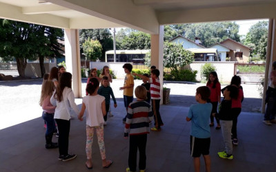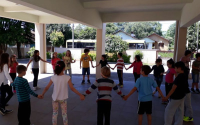 Após a apresentação do trabalho, os alunos levaram as turmas para participar de brincadeiras que eles descobriram durante a pesquisa, inspiradas no livro Ndule Ndule, de Rogério Andrade Barbosa.
