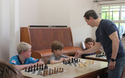 Turma de Xadrez participa de desafio oito contra um com enxadrista convidado