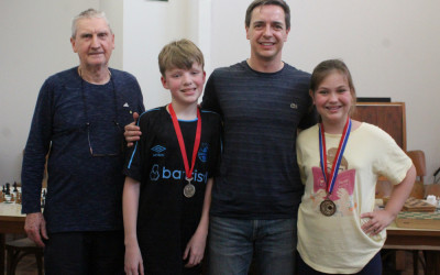 Após pouco mais de uma hora de disputa, por contagem de pontos, Mariana ficou em 1º lugar e Kauê em 2º. Como premiação, o professor Romar entregou medalhas, balas e bolachas no formato de peças de xadrez.