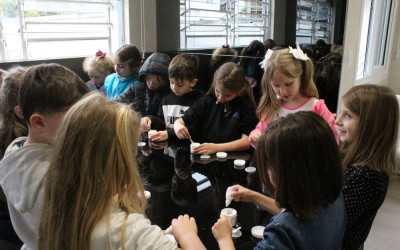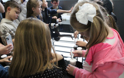 Além de experimentar alguns dos produtos desenvolvidos na D’Pharma, como sabonete, hidratante e protetor solar, a expectativa da visita estava na fabricação do próprio hidratante, feito pelas crianças utilizando camomila e essência de morango.