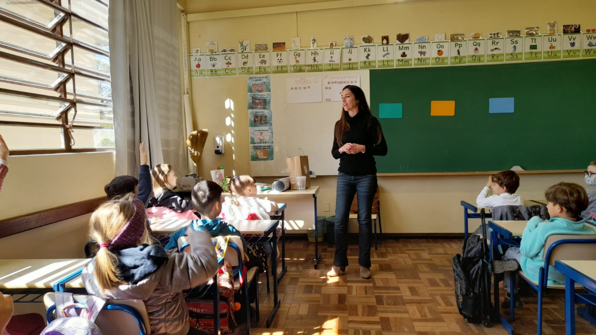 Na terça-feira, 30 de agosto, a turma do 1º ano B recebeu a visita da nutricionista Roberta, mãe do colega Pedro Koch. O convite foi para uma conversa sobre as frutas, tema que os estudantes irão apresentar na Mostra de Iniciação Científica que inicia hoje, 10.