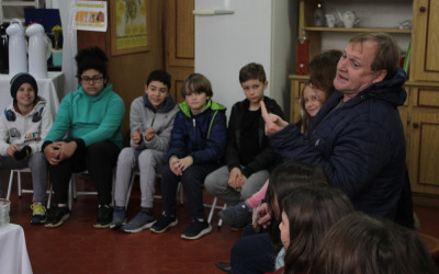 Turma do 5º ano recebe o ator e diretor Betinho Klein para falar sobre a personagem Herta