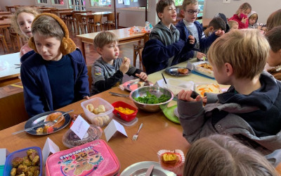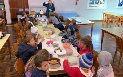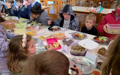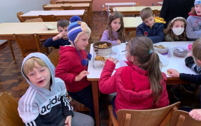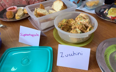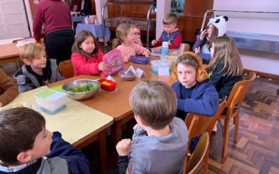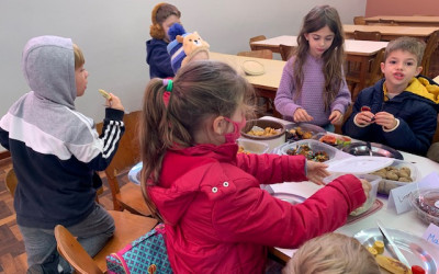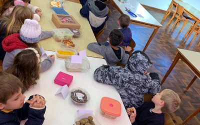 Ivoti - A turma do 2º ano do Currículo Bilíngue Português e Alemão (2.Klasse) teve uma manhã de sexta-feira, 20, muito saborosa. Eles concluíram o projeto sobre plantas trazendo um lanche à base de plantas preparado com as famílias para compartilhar com os colegas.
