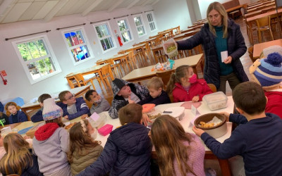 “Vimos como os ingredientes se chamam em Língua Alemã e na próxima aula de Informática as receitas serão digitadas pelos alunos para compartilhar com as famílias. Foi um momento bem especial”, destacou a professora da turma, Daniela Bühler.