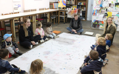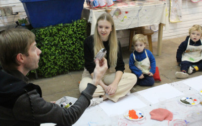 As crianças do Nível 2 seguem realizando diferentes atividades relacionadas ao projeto “Infância com arte: os pequenos artistas do Nível 2”. Na sexta-feira, 6, as turmas da manhã e da tarde realizaram uma visita à Oficina RB - Atelier de Arte, do artista Rogert Bauermann.