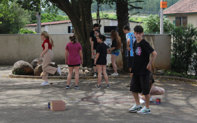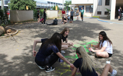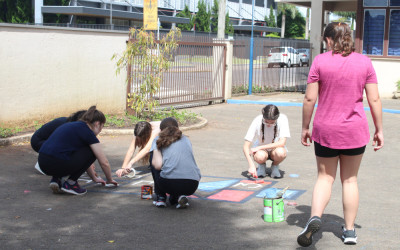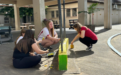 Além do pátio externo do Prédio F, os estudantes também realizaram pinturas na área interna, pensando nas brincadeiras em dias de chuva. Em grupos, os alunos do 3º ano escolheram o que iriam pintar e, ao longo da semana, a turma do 1º ano deu sequência na atividade, que deve ser finalizada ainda essa semana.