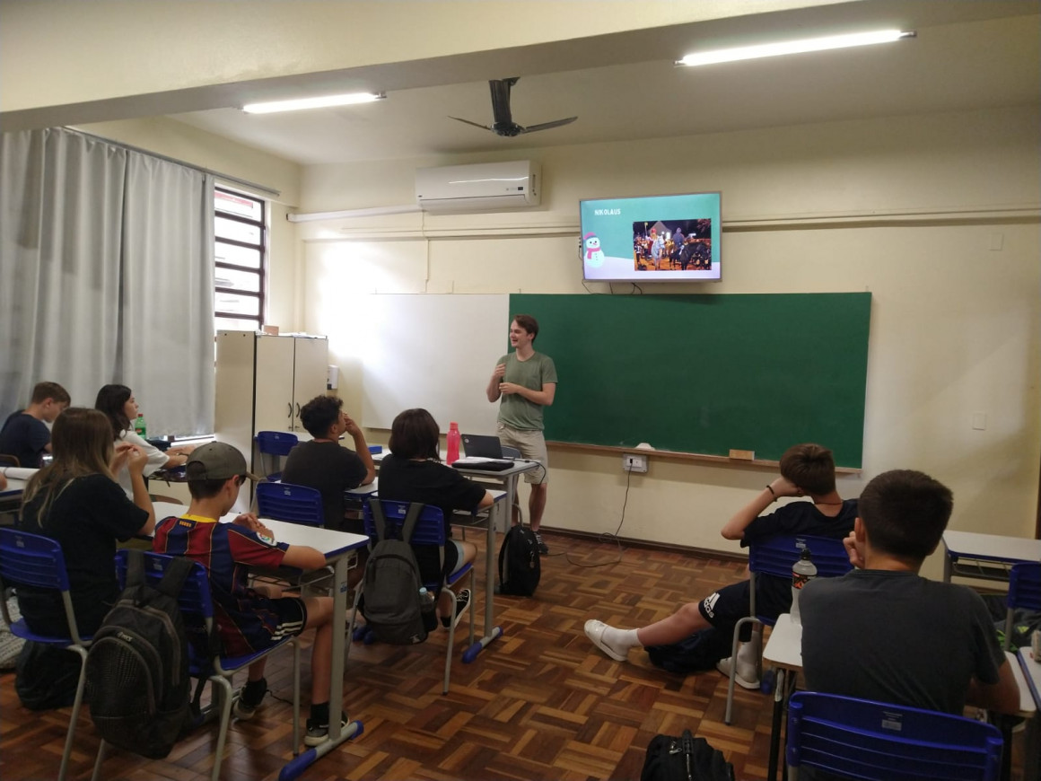 Durante a conversa Ferdinand contou como se comemora o Natal na Alemanha, falou sobre atividades e comidas típicas. Além disso, os estudantes interagiram e compartilharam suas tradições de Natal.