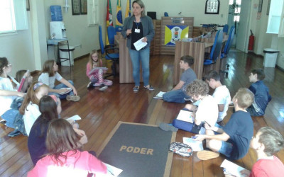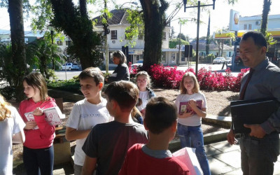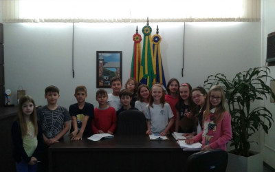 Ivoti – Acompanhados das professoras Camila Costa e Thais Steffens, as turmas do 4º ano realizaram um passeio por Ivoti, na segunda-feira, 13. Eles aprenderam mais sobre os bairros, avenidas, Morro Picudo (Spitzkopf), foram à Prefeitura, Câmara dos Vereadores, Igreja Matriz e Belvedere. Na Praça da Emancipação tiveram a oportunidade de conversar com o prefeito, Satoshi Suzuki.