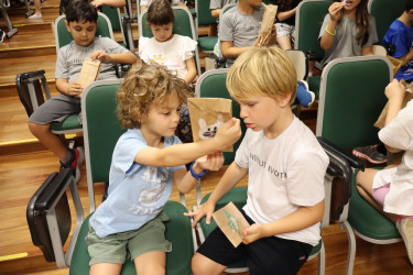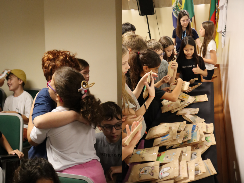 Neste ano, os tradicionais mimos do coelho ganharam um significado ainda mais especial. Organizados na sala de conferências, os presentes foram retirados de forma aleatória pelos estudantes, que tiveram a oportunidade de presentear colegas de outras turmas. A entrega foi acompanhada de abraços e votos de feliz Páscoa, incentivando gestos de carinho, empatia e convivência entre os alunos.