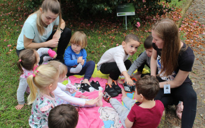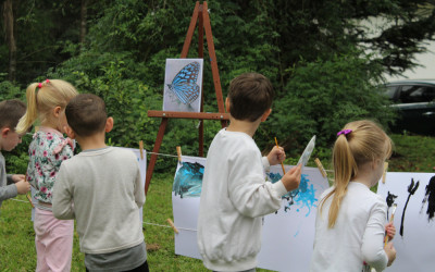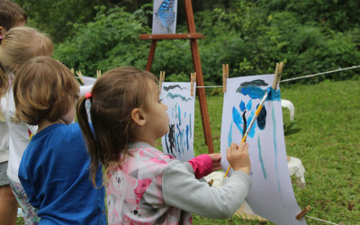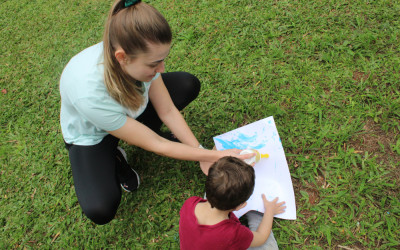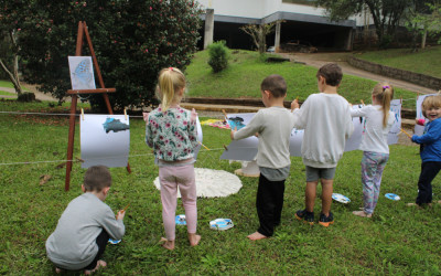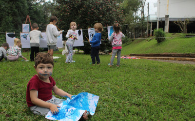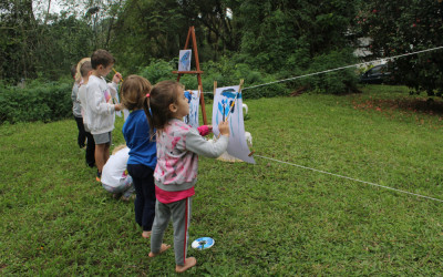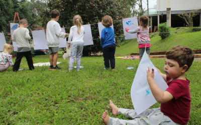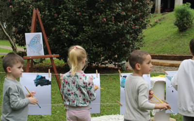 Primeiro, um piquenique, depois um momento de pintura. A proposta realizada pelas crianças do Nível 3 da Educação Infantil na tarde de segunda-feira, 19, faz parte do projeto “Os pequenos moradores da nossa Escola”. Primeiro, em sala, as crianças conversaram sobre a borboleta e suas características. Nessa conversa, descobriram que a borboleta sente o mundo através das patinhas.