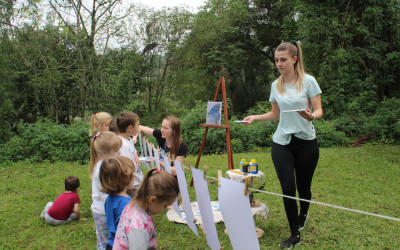 Entre pinceladas e muita concentração, as crianças se inspiraram na releitura da obra da borboleta intitulada “Metamorfose”, pintada pelo artista Juliano Lopes. A proposta integra os trabalhos que serão apresentados na Mostra de Iniciação Científica, em setembro.